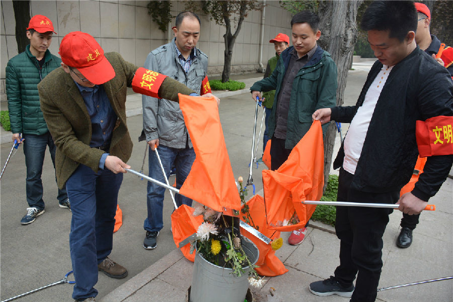 三、開展“倡議文明緬懷,減少廢棄污染”拾撿垃圾志愿服務活動。緬懷先烈活動結束后,市建投公司志愿者們在烈士陵園內開展“倡議文明緬懷,減少廢棄污染”拾撿垃圾志愿服務活動。每位志愿者都手持垃圾鉗,認真將散落在紀念碑前以及隱藏在雜草中的廢棄鮮花、飲料瓶、紙張等垃圾拾撿起來放入提前準備好的垃圾袋中。活動持續一個小時,志愿者們在祭奠先烈的同時以自己的實際行動表達崇敬之情,并倡導以獻一束花、敬一杯酒、植一棵樹、清掃墓碑等方式寄托哀思,將祭拜逝者的傳統習俗以更加環保、健康、安全、文明的方式表達,營造文明祭祀的良好氛圍。