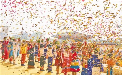 社會各界代表及近百家新聞媒體5000余人在現場參加大典。圖片由本報記者馬健徐宗福拍攝。