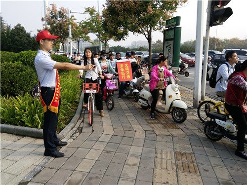 此次活動(dòng)分為上午7:30—8:30,下午6:00—7:00兩個(gè)時(shí)段進(jìn)行,一組四人,每天兩組志愿者輪流執(zhí)勤。志愿者們頭戴小紅帽,身披紅色綬帶,手舉小紅旗,在黃河?xùn)|路眾意西路交叉的四個(gè)路口處分別進(jìn)行引導(dǎo)活動(dòng),通過(guò)勸阻橫穿馬路、亂闖紅燈等不文明行為,引導(dǎo)市民遵守交通法規(guī),文明行路、文明行車(chē)。針對(duì)黃河?xùn)|路眾意西路交叉口車(chē)流量大,電動(dòng)車(chē)等行人眾多的問(wèn)題,志愿者通過(guò)舉落小紅旗,引導(dǎo)行人通過(guò)斑馬線安全過(guò)馬路,提醒過(guò)往行人提高文明出行和交通安全意識(shí)。同時(shí),志愿者還熱心攙扶老人、孕婦等特殊群體過(guò)馬路。