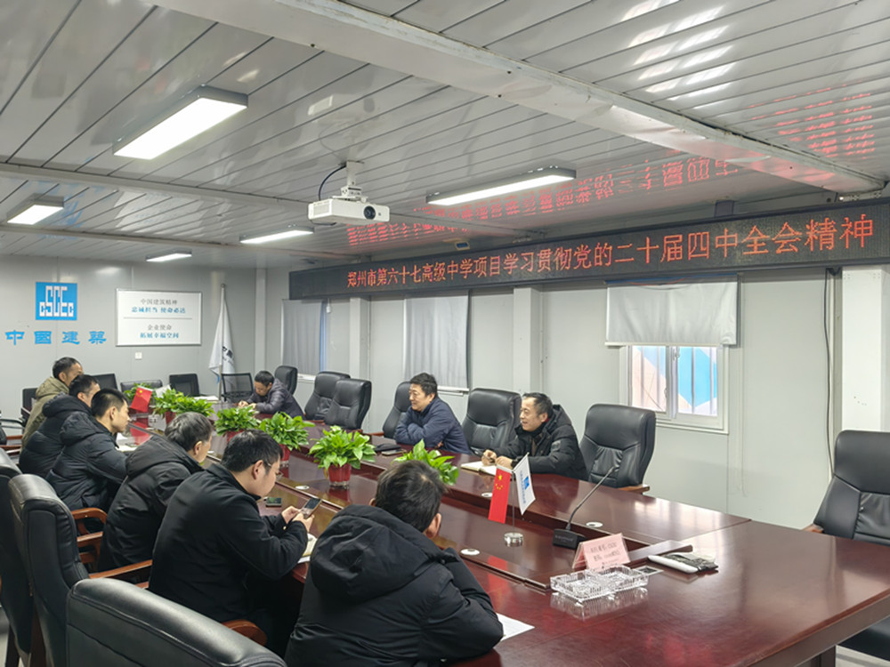 項目部總經理張禎棟要求項目人員原原本本、認認真真學習研讀習近平總書記在黨的二十屆四中全會上的重要講話、全會報告等內容,推動全會精神進項目、進班組。要把圓滿完成全年各項目標任務作為檢驗學習貫徹黨的二十屆四中全會精神成效的重要標準,更要將深入學習貫徹全會精神與做好當前工作緊密結合起來,在確保安全穩定的前提下,千方百計推進項目建設,以務實擔當的作風,不折不扣抓好落實,確保圓滿完成第六十七高級中學項目建設任務。