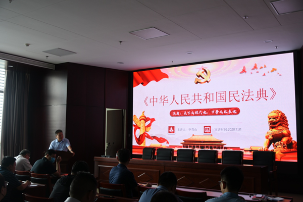 7月31日下午,根據集團公司2020年度普法培訓計劃要求,為大力宣傳學習新通過的《中華人民共和國民法典》,集團公司在17樓會議室組織開展了《宣傳貫徹<中華人民共和國民法典>法治宣講報告會》,本次民法典宣講由河南辰中律師事務所申律師主講。集團公司70多名員工參加了本次培訓。