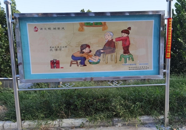 四、設(shè)置宣傳載體,營造文明家園濃郁氛圍。今年,集團公司為郭崗村提供3萬余元幫扶資金幫助其打造了精神文明專欄,分為家風家訓(名人家風)專欄,“講文明 樹新風”(孝當先、傳承家風)、“文明健康 有你有我”公益廣告等內(nèi)容,使社會主義核心價值觀深刻融入到村民的生產(chǎn)生活和精神世界,形成全體村民的修身行善共識和明禮守法自覺,為促進郭崗村經(jīng)濟健康發(fā)展、構(gòu)建美麗鄉(xiāng)村、文明家園打下良好根基。