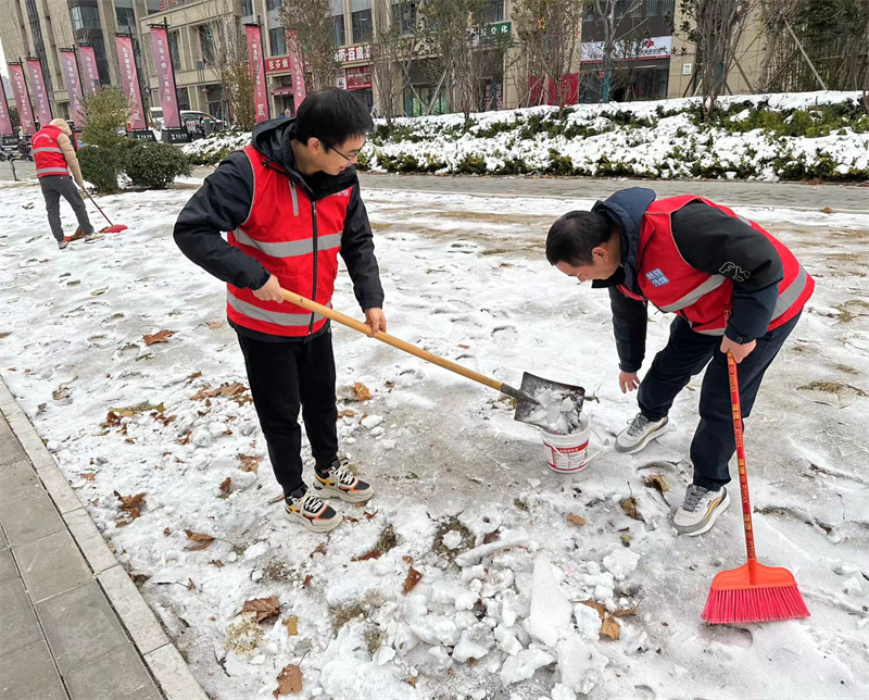 盡管路面因?yàn)闅鉁伢E降結(jié)冰濕滑,大家卻依然不畏嚴(yán)寒、干勁十足,手持鏟雪工具,齊心協(xié)力、分工合作,認(rèn)真清理公交車站臺(tái)區(qū)域積雪。經(jīng)過一上午的不懈努力,積雪被一一清掃干凈,結(jié)冰路面也被鏟除,為群眾及過往的車輛營(yíng)造了安全暢通的出行環(huán)境。